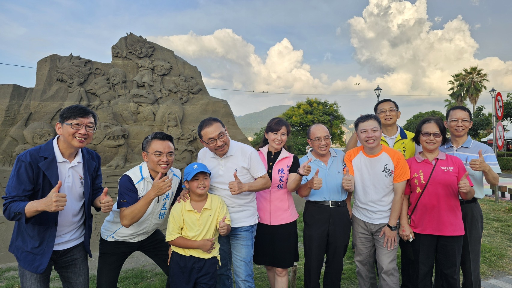新北市政府高灘地工程管理處處長黃裕斌表示,八里城市沙雕展不僅展現藝術創意,也為地方帶來觀光活力,誠摯邀請民眾攜家帶眷來到八里左岸,欣賞沙雕、享受親子時光,一同成為「被選召的孩子」。